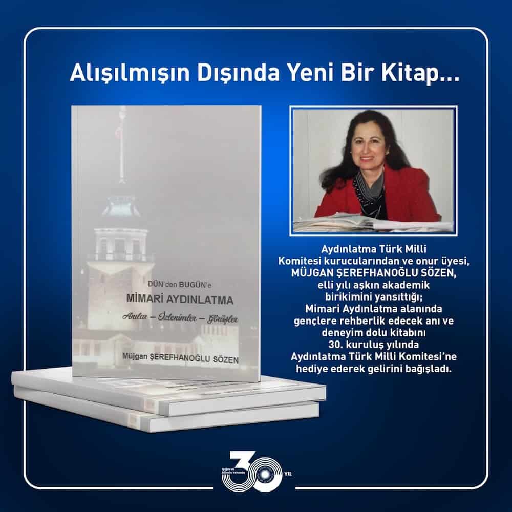 ATMK kurucu üyelerinden ve onur üyesi Prof. Müjgan Şerefhanoğlu Sözen, yazdığı “Dün’den Bugün’e Mimari Aydınlatma: Anılar, İzlenimler, Görüşler” isimli kitabını 30. kuruluş yılında Aydınlatma Türk Milli Komitesi’ne hediye ederek, gelirini ATMK’ya bağışladı.