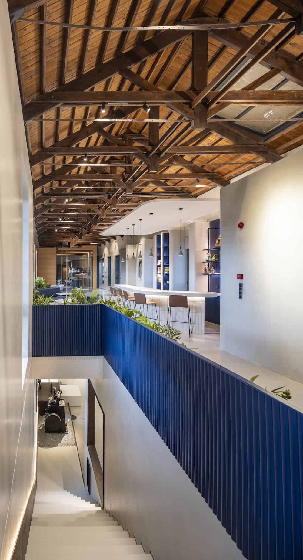 İç mekan tasarımında, yapının geçmişindeki izler korunarak tasarımda yönlendirici unsur haline getirildi. Zemin çizgileri mekanların akslarını oluşturarak, alanları ve kütleleri tanımlıyor. Mevcut kabuk ve mimari elemanlar; bir adet toplantı odası, ıslak hacimler, merdiven ve saat korunuyor. Esneklik ve bir aradalığın tasarım prensipleri olduğu bu projede, tarihin izlerini taşıyan ahşap çatı açık ofislerin karakterini vurgulayan bir mimari unsur haline geliyor.
