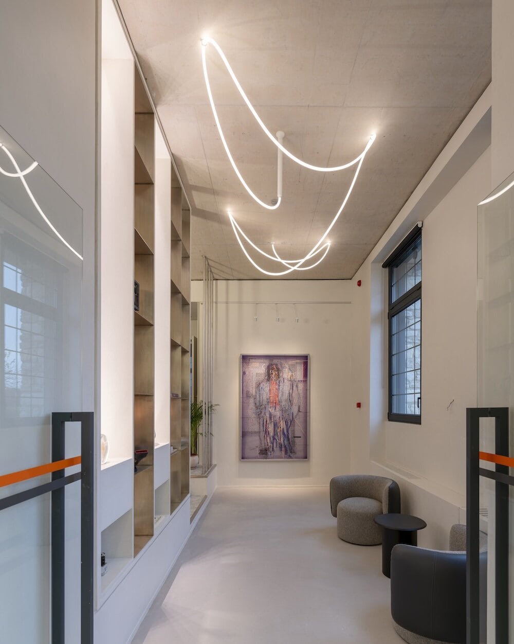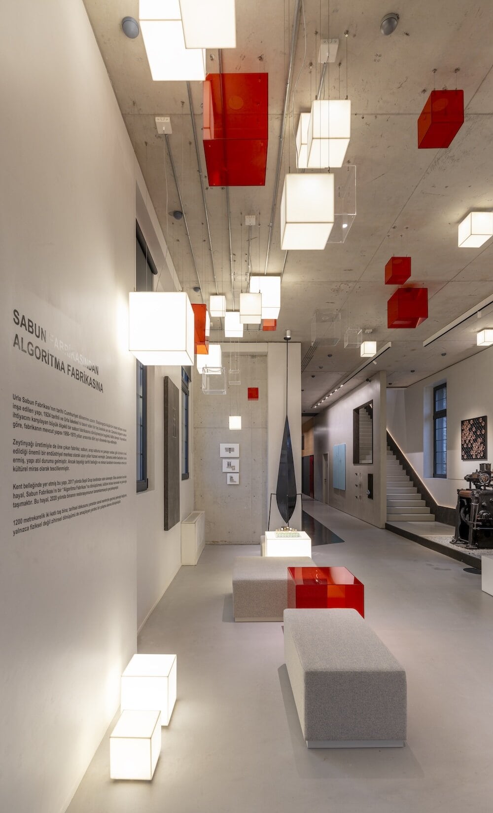 Binanın giriş koridorunda; tarihi fabrikadan kalan parçaların, Sepil Holding’in özel koleksiyon ürünlerinin ve sanat eserlerinin sergilendiği bir müze ortamı oluşturuldu. Bu mekana; tasarımı mimari firma tarafından yapılan, kendisi de bir sanat eseri gibi davranan, tarihi binadaki hatları takip eden kübik aydınlatma elemanları eklendi. Farklı boyutlardaki bu küplerin aynı dili takip etmesi, farklı senaryolara adapte olması ve homojen bir bütünü oluşturması amacıyla, her biri için bluetooth dimleme yöntemiyle kodlama yapıldı. Ray üzerine yerleştirilmiş aydınlatma ürünleri ve yer yer platforma eklenen gömme spotlarla mimari dilin esnekliği takip edildi.